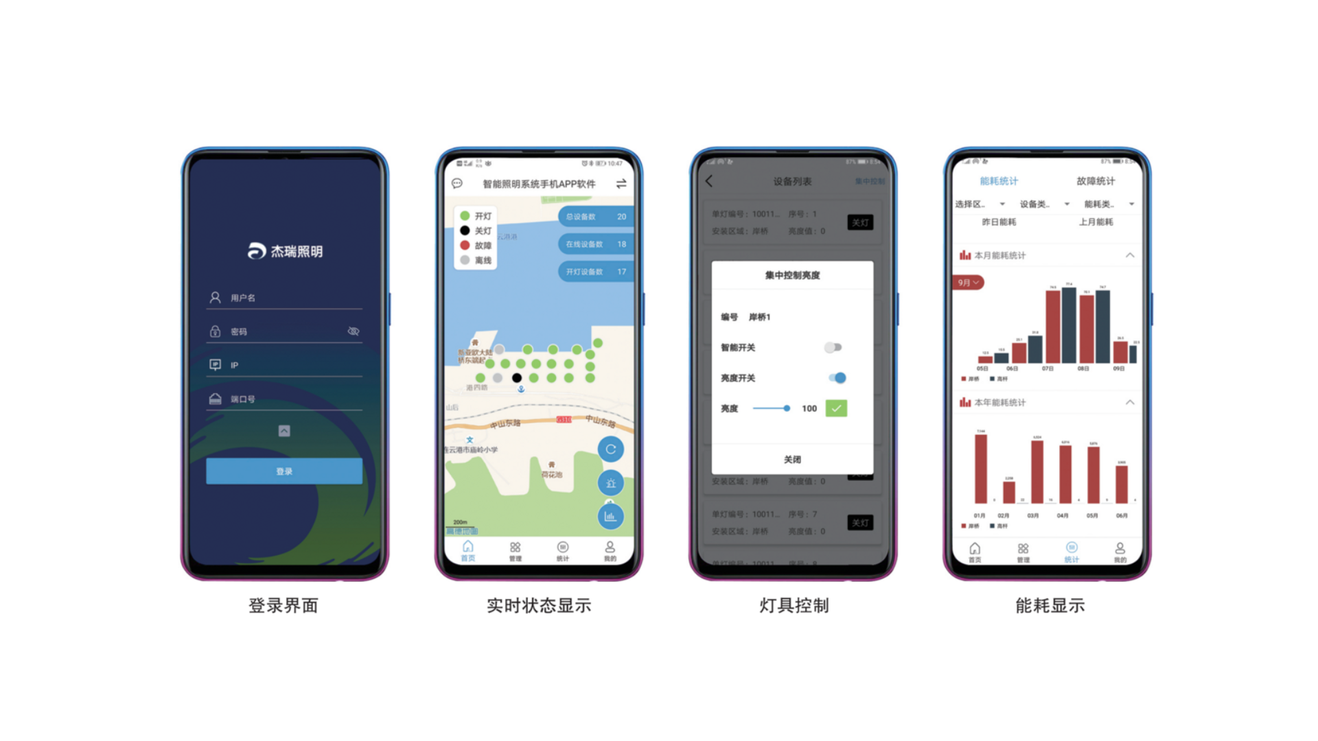 杰瑞智慧照明系統(tǒng)JR-LCS-Smart2000是杰瑞針對港口岸橋和堆場、廠房等作業(yè)區(qū)域的照明特點,利用云計算、大數(shù)據(jù)、人工智能、視頻檢測、嵌入式與物聯(lián)網(wǎng)等技術(shù)設(shè)計開發(fā)的全新一代自適應(yīng)智慧照明系統(tǒng)。系統(tǒng)具備智能控制和高效節(jié)能兩大特點,實時感知作業(yè)區(qū)域內(nèi)的人、車、環(huán)境,支持與企業(yè)生產(chǎn)調(diào)度系統(tǒng)對接,實現(xiàn)作業(yè)區(qū)域內(nèi)的自適應(yīng)照明,達到高效節(jié)能目的。系統(tǒng)兼具燈具狀態(tài)實時顯示、燈具故障實時推送、能耗大數(shù)據(jù)實時統(tǒng)計、控?zé)纛A(yù)案自主可調(diào)等多種功能,滿足企業(yè)對照明系統(tǒng)的精細化管理。系統(tǒng)包含:智能照明管理平臺、智能燈具控制器、高穩(wěn)定性LED燈具(內(nèi)含單燈控制器)、高精度傳感器等一整套軟硬件設(shè)備,同時擁有桌面Web端和手機端兩種管理方式。